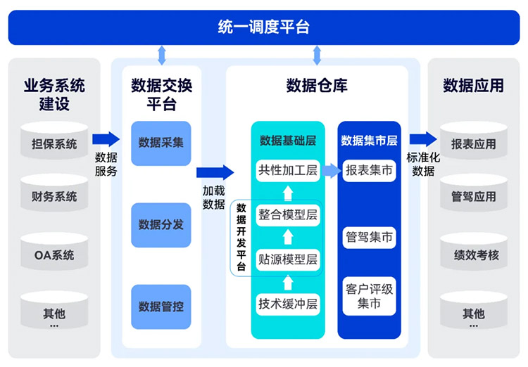 統一數據采集、消除數據孤島:將分散在擔保、財務、OA等不同系統的內部數據及外部數據進行整合,實現 T+1、準實時數據采集,形成統一的數據視圖,消除數據孤島,為龍江農擔提供全面、準確、及時的數據支持;
