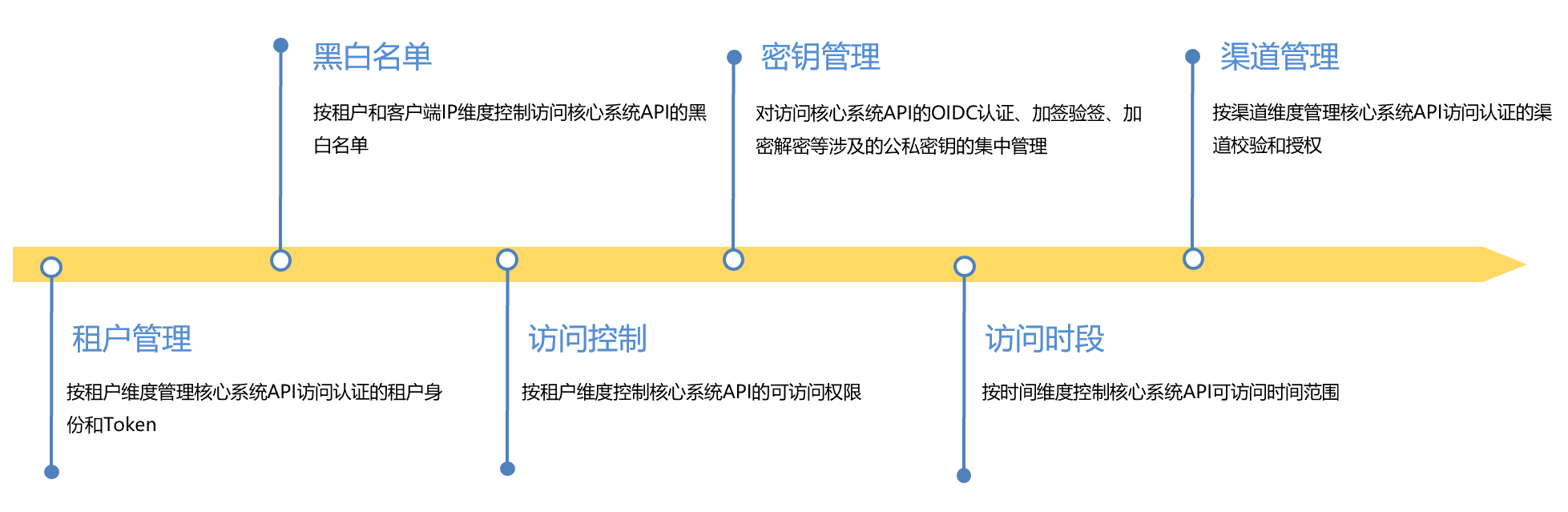 ● 安全控制體系:提供黑白名單、訪問控制、密鑰、租戶認(rèn)證等多種安全體系,其中密鑰又從加密解密、加簽驗(yàn)簽和認(rèn)證授權(quán)等多種方式來保證API訪問的安全性。